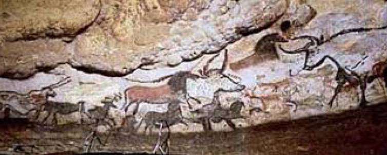 Dated between 28,000 and 10,000 BCE, the beautiful paintings on cave walls found near Lascaux, France represent the earliest surviving examples of the artistic expression of early people.