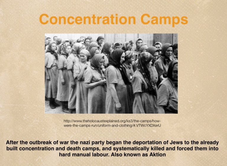 After the outbreak of war the nazi party began the deportation of Jews to the already built concentration and death camps, and systematically killed and forced them into hard manual labour. Also known as Aktion