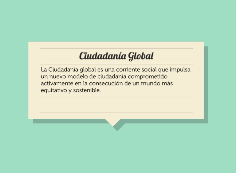La Ciudadanía global es una corriente social que impulsa un nuevo modelo de ciudadanía comprometido activamente en la consecución de un mundo más equitativo y sostenible.