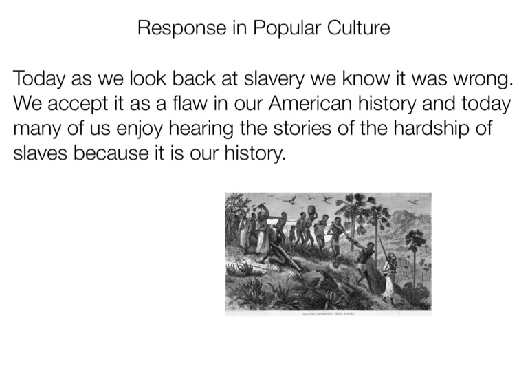 Today as we look back at slavery we know it was wrong. We accept it as a flaw in our American history and today many of us enjoy hearing the stories of the hardship of slaves because it is our history.