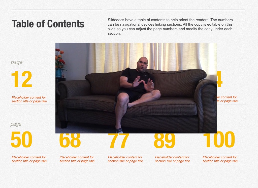 Slidedocs have a table of contents to help orient the readers. The numbers