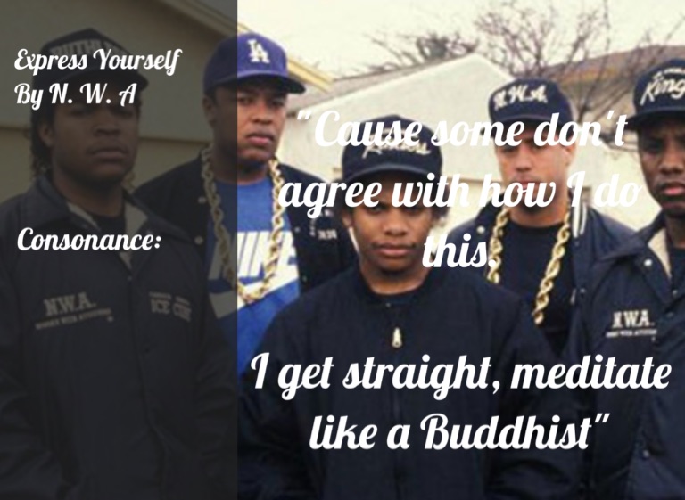 In this example, consonance is shown through the words 'don't, do, meditate and Buddhists.'