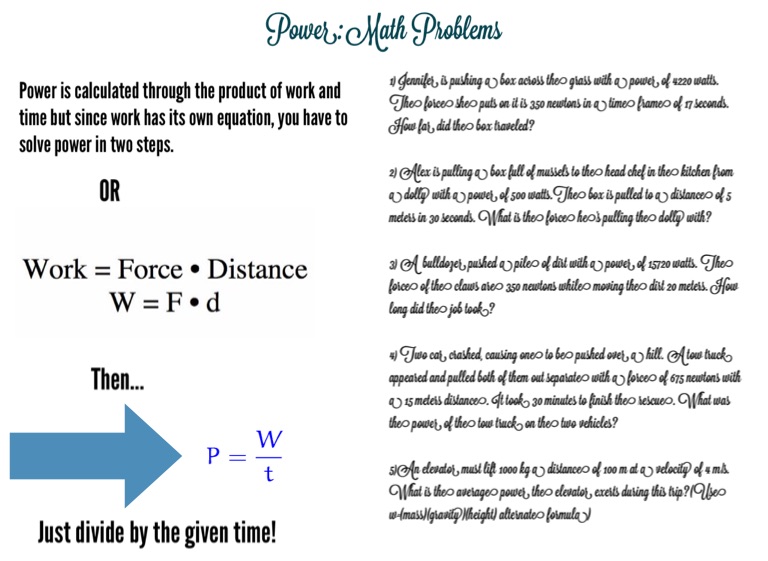 4) Two car crashed, causing one to be pushed over a hill. A tow truck appeared and pulled both of them out separate with a force of 675 newtons with a 15 meters distance. It took 30 minutes to finish the rescue. What was the power of the tow truck on the two vehicles?