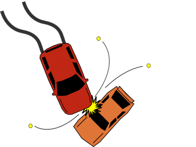How about an example? Well, let's think of a car crash like the picture you see on the top left part of this slide. Car crashes occur when one of the drivers are not driving exactly normal due to distractions, blind spots and so much more. When the vehicles collide with one and another, the cars don't bounce off. Nope. In result, the two cars stick to each other with both of their masses added together.