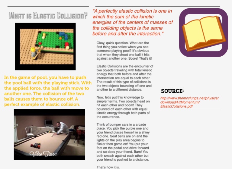 In the game of pool, you have to push the pool ball with the playing stick. With the applied force, the ball with move to another one. The collision of the two balls causes them to bounce off. A perfect example of elastic collision.