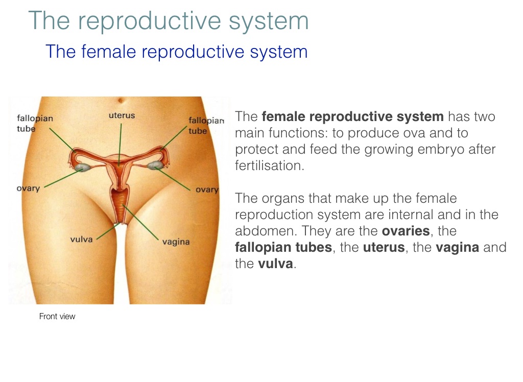 The female reproductive system has two main functions: to produce ova and to protect and feed the growing embryo after fertilisation.