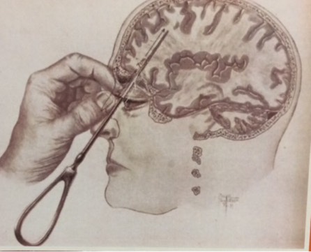 This technique involved using an instrument called an orbitoclast, a modified ice pick, that the physician would insert through the patient's eye socket using a hammer.