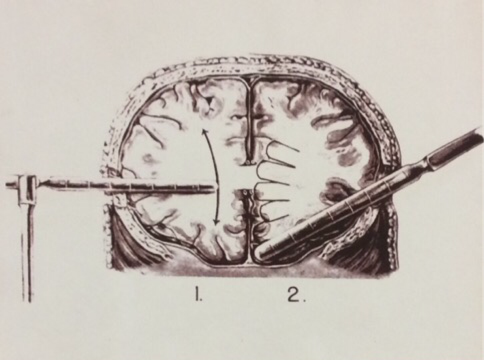 Later, in the 1940s Moniz introduced a surgical instrument called a leucotome, which contains a loop of wire that when rotated, creates a circular lesion in the brain
