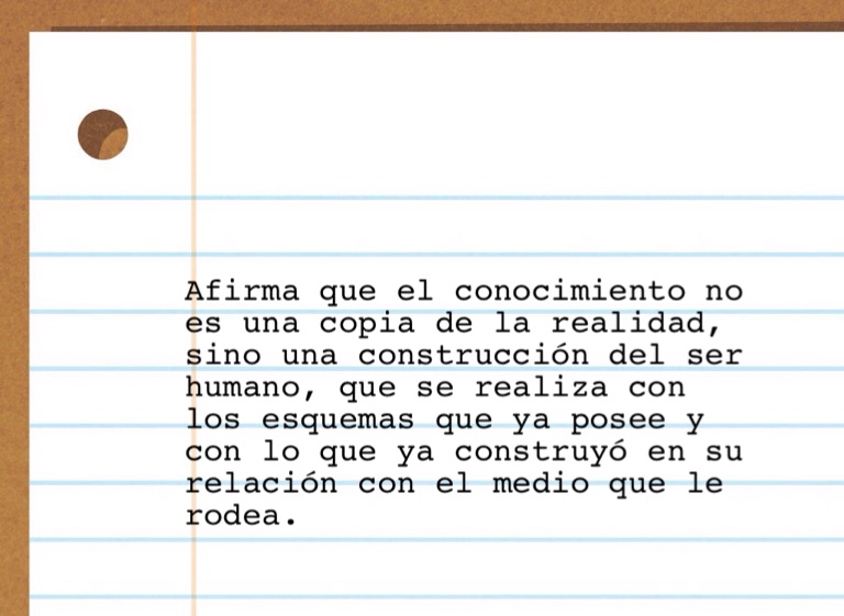 Afirma que el conocimiento no es una copia de la realidad, sino una construcción del ser humano, que se realiza con los esquemas que ya posee y con lo que ya construyó en su relación con el medio que le rodea.