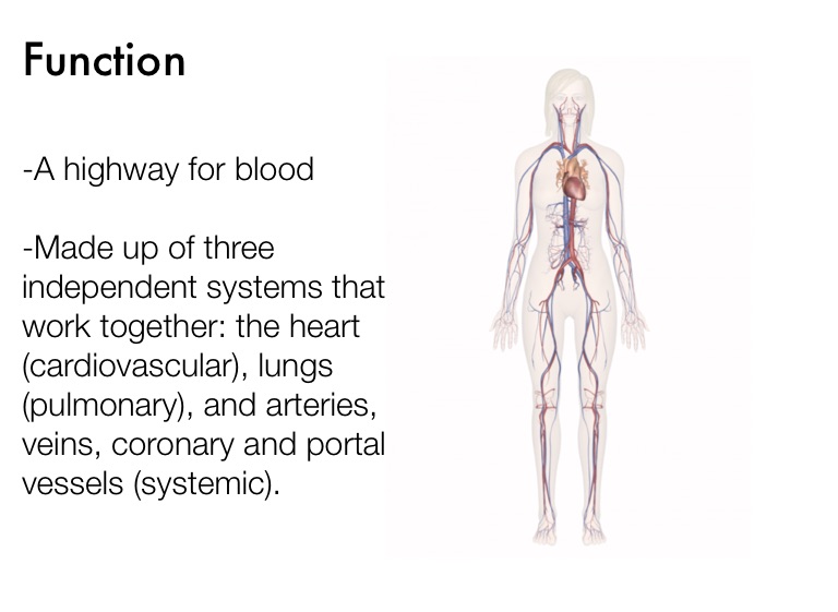 -Made up of three independent systems that work together: the heart (cardiovascular), lungs (pulmonary), and arteries, veins, coronary and portal vessels (systemic).