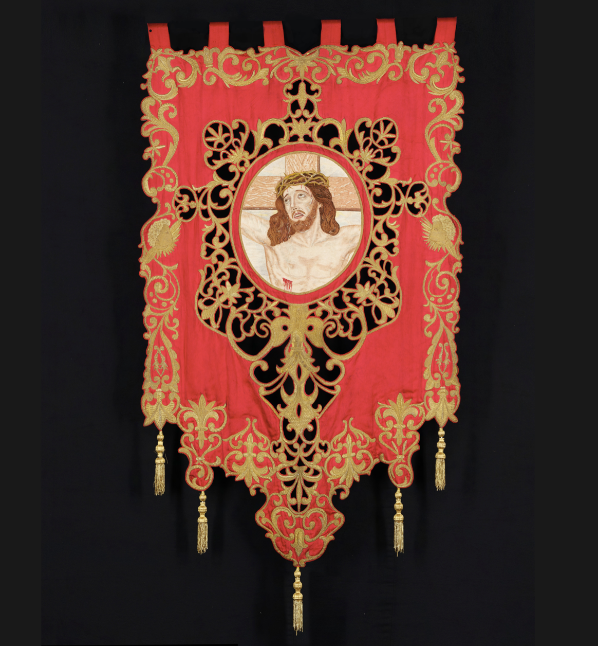 ·El director artístico perfila el dibujo que va llevar la pieza en papel de seda. El boceto se coloca encima del lienzo y, a partir de ahí, las bordadoras comienzan a bordar en sedas matizadas, de acuerdo con los diferentes tipos de puntos del bordado, que según la disposición puede ser transversal, radial, vertical, y por los dibujos que forman se denominan litografías, estrellas, arenilla, enrejados, patas de gallo, etc.