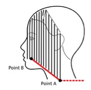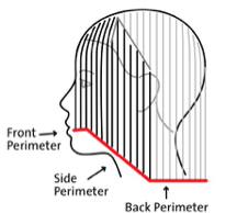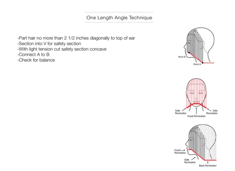 -Part hair no more than 2 1/2 inches diagonally to top of ear