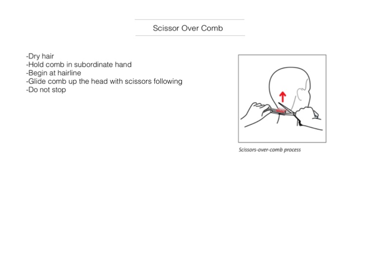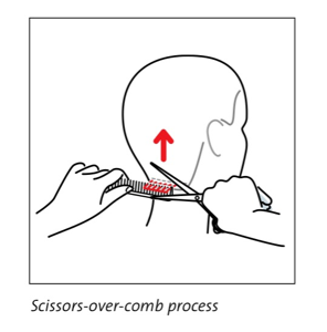 -Glide comb up the head with scissors following
