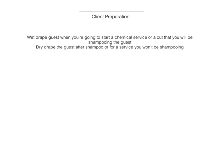 Wet drape guest when you're going to start a chemical service or a cut that you will be shampooing the guest