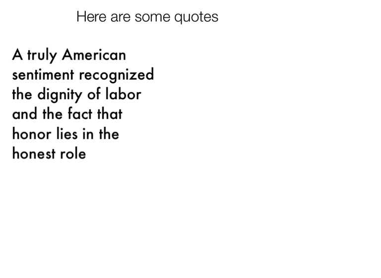 A truly American sentiment recognized the dignity of labor and the fact that honor lies in the honest role