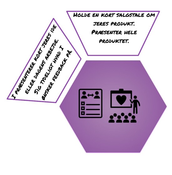 Grupper præsenterer det forberedte vedr. ideen og får feedback.