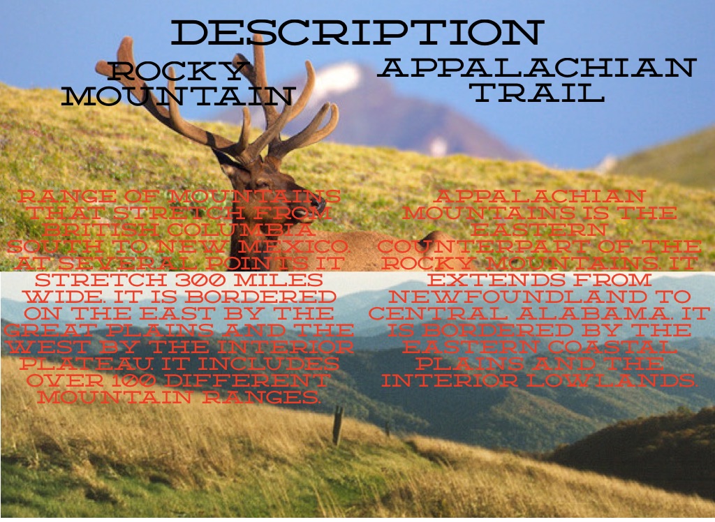 Appalachian mountains is the eastern counterpart of the rocky mountains. It extends from newfoundland to central alabama. it is bordered by the eastern coastal plains and the interior lowlands.