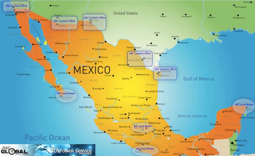JMC Relays through five US/Mexico Hub points to key points in Mexico