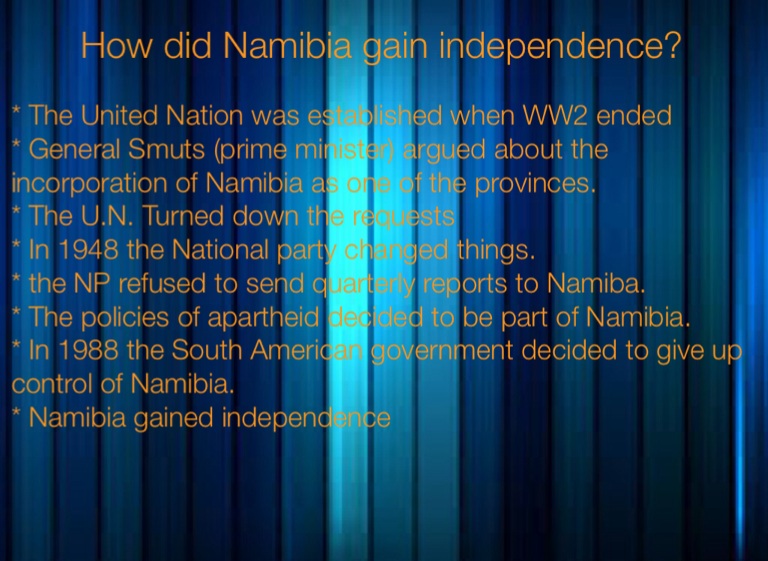* Namibia gained independence