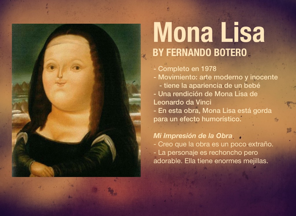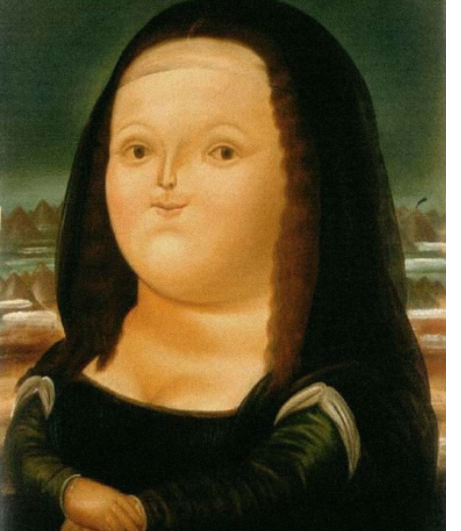 - En esta obra, Mona Lisa está gorda para un efecto humorístico.
