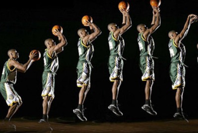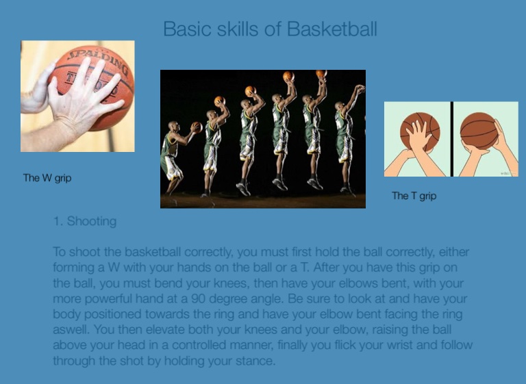 To shoot the basketball correctly, you must first hold the ball correctly, either forming a W with your hands on the ball or a T. After you have this grip on the ball, you must bend your knees, then have your elbows bent, with your more powerful hand at a 90 degree angle. Be sure to look at and have your body positioned towards the ring and have your elbow bent facing the ring aswell. You then elevate both your knees and your elbow, raising the ball above your head in a controlled manner, finally you flick your wrist and follow through the shot by holding your stance.
