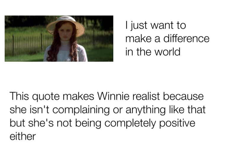 This quote makes Winnie realist because she isn't complaining or anything like that but she's not being completely positive either
