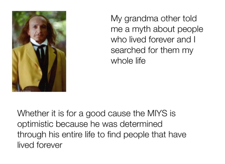 Whether it is for a good cause the MIYS is optimistic because he was determined through his entire life to find people that have lived forever