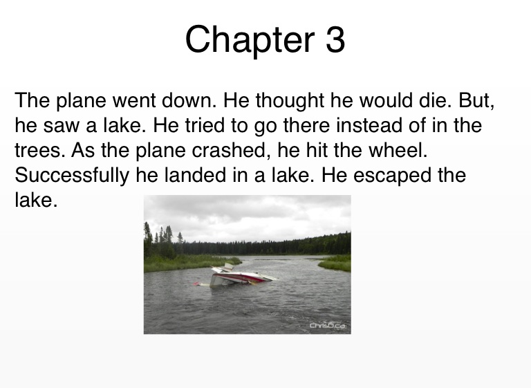 The plane went down. He thought he would die. But, he saw a lake. He tried to go there instead of in the trees. As the plane crashed, he hit the wheel. Successfully he landed in a lake. He escaped the lake.