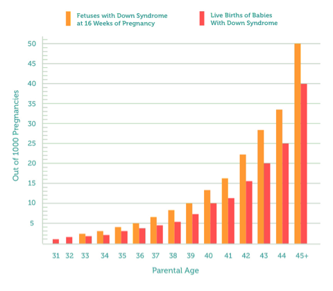 Some parents have a greater chance of having a Down syndrome baby. Risk factors include; advancing material age, or having had one child with Down syndrome.