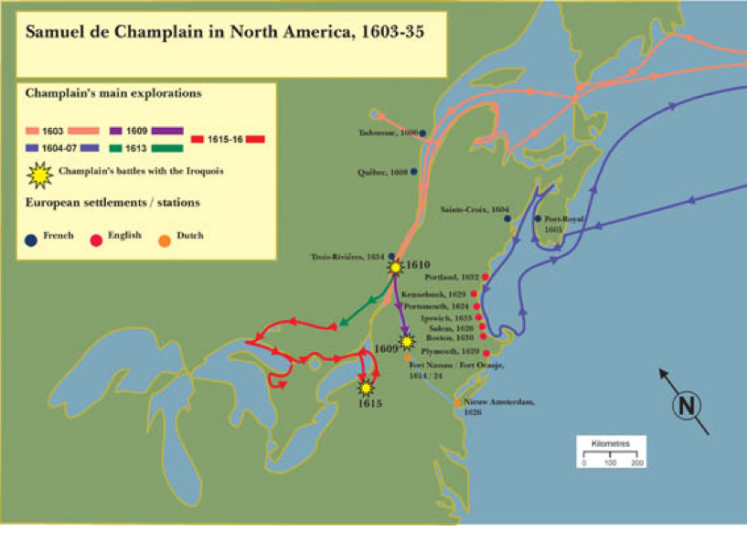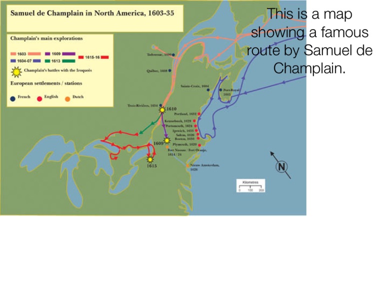 This is a map showing a famous route by Samuel de Champlain.