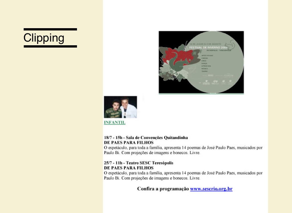 Portfólio do show infantil De Paes para filhos.