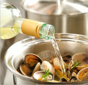 Elle a ajouté de l'ail, des palourdes, et du vin blanc à la poêle
