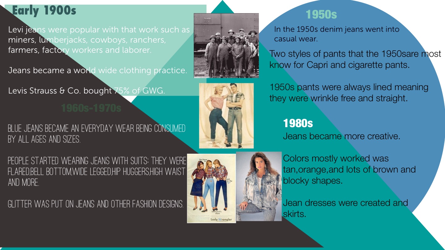 Blue jeans became an everyday wear being consumed by all ages and sizes.