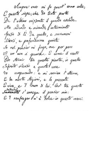Alla fine viene usato il mare come metafora che rispecchia l'infinito, ma anche l'emozione interiore derivante dal confronto fra il concetto di infinito spazio-temporale e la brevità della vita rispetto ad esso. È un'emozione dolce.