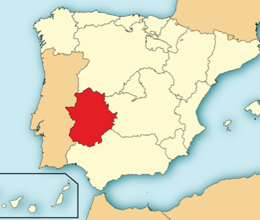 The region of Extremadura is located between the region of Andalucía and the eastern border of Portugal.