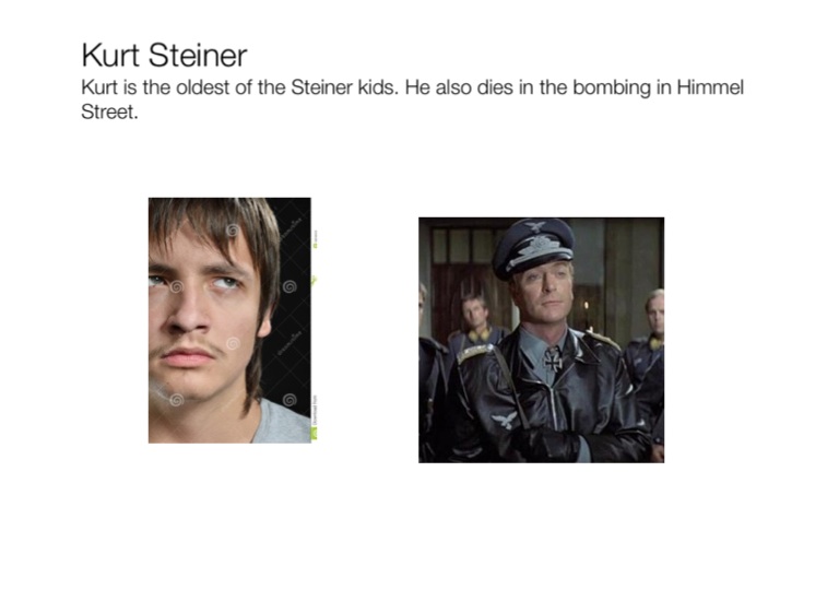 Kurt is the oldest of the Steiner kids. He also dies in the bombing in Himmel Street.