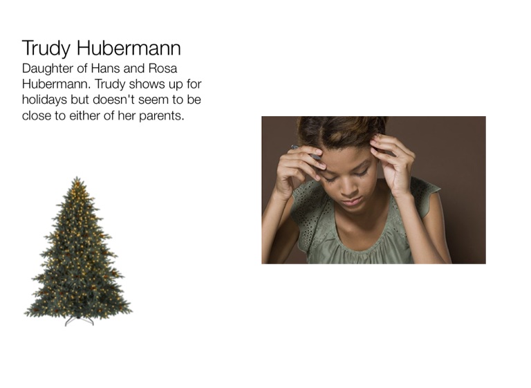 Daughter of Hans and Rosa Hubermann. Trudy shows up for holidays but doesn't seem to be close to either of her parents.