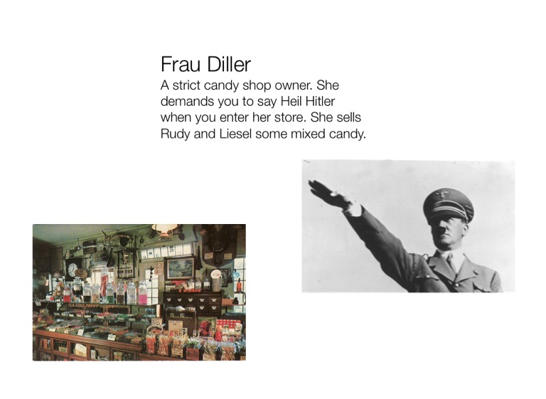 A strict candy shop owner. She demands you to say Heil Hitler when you enter her store. She sells Rudy and Liesel some mixed candy.