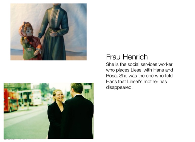 She is the social services worker who places Liesel with Hans and Rosa. She was the one who told Hans that Liesel's mother has disappeared.