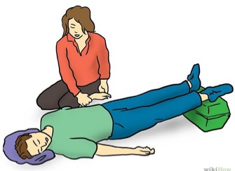 2. Have the person lie down on his or her back with feet about a foot higher than the head. If raising the legs will cause pain or further injury, keep him or her flat. Keep the person still.