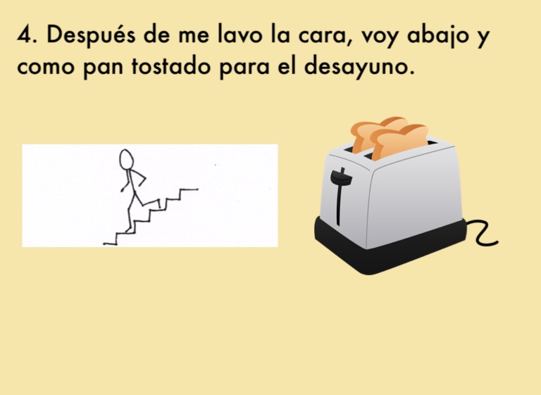 4. Después de me lavo la cara, voy abajo y como pan tostado para el desayuno.