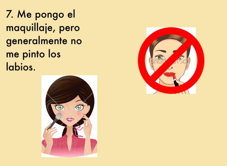 7. Me pongo el maquillaje, pero generalmente no me pinto los labios.