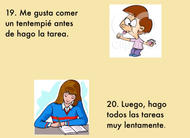 19. Me gusta comer un tentempié antes de hago la tarea.