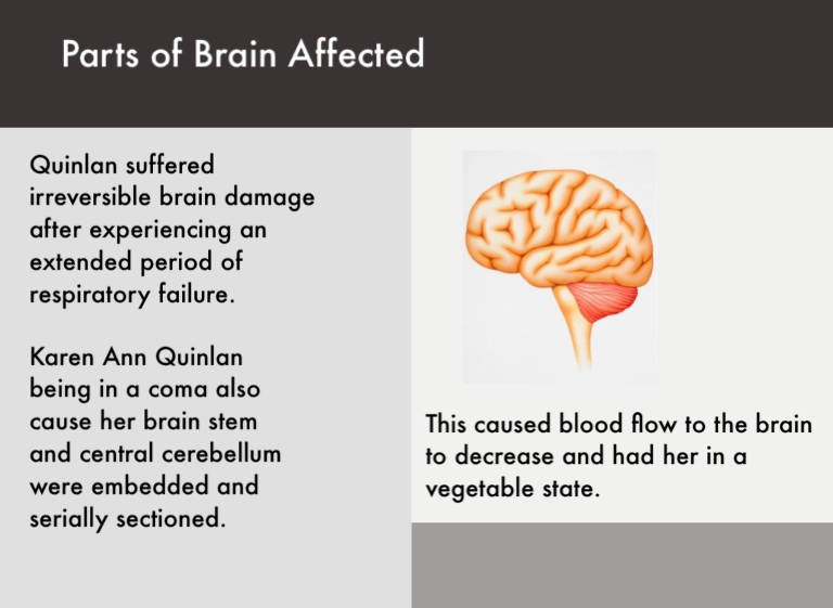 Karen Ann Quinlan being in a coma also cause her brain stem and central cerebellum were embedded and serially sectioned.