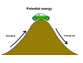 Examples are: a rubber band that is stretched and waiting to be released, a rock a the edge of a cliff, an acorn hanging from a tree, and gasoline.