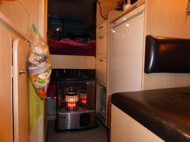 De avonden zijn wel koud maar we hebben ons er op voorbereid met een heuse petroliumkachel. Ook de elektrische deken is niet thuis gebleven. Eerst de kachel buiten aansteken