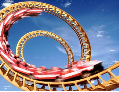 The roller coster spires in a circular pattern