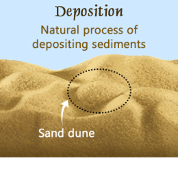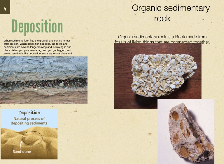 When sediments form into the ground, and comes to rest after erosion. When deposition happens, the rocks and sediments are now no longer moving and is staying in one place. When you play freeze tag, and you get tagged, and are frozen that is like deposition, you stay in one place and don't move until the Rock cycle starts again.