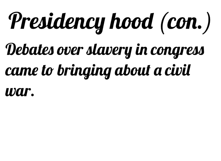 Debates over slavery in congress came to bringing about a civil war.