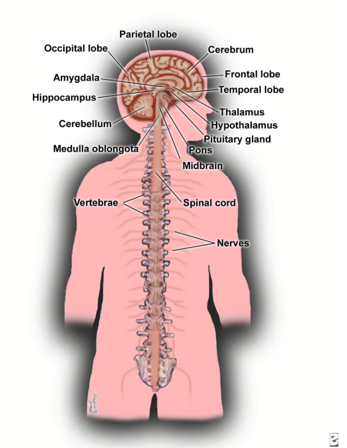 3) Brain Stem: in charge of functions needed to stay alive, controls your involuntary muscles, and sends messages from the body to the brain